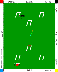 | Oder: CompetitionLine (Grafik rechts oben): Durch drei Tore zum Peg - um ihn herum und retour. Gewonnen hat, wer das Tor 1 als ertster wieder durchspielt. Diese Variante könnte man sogar in einem Hotelgang spielen. Auch in Salzburg ! | ||||||||||||||||||||||||||||||||